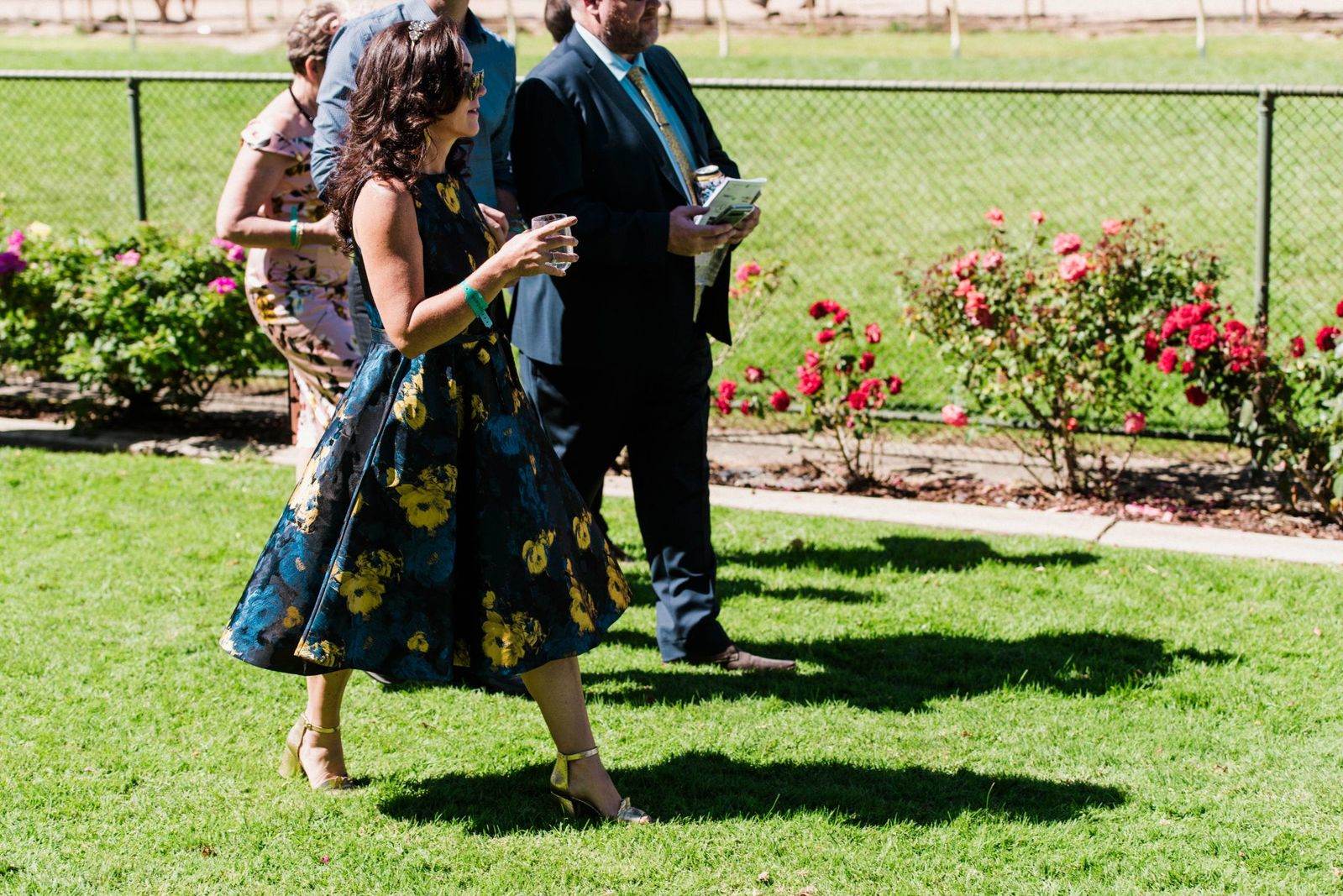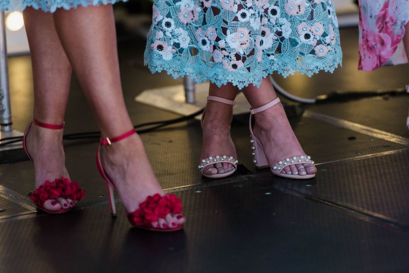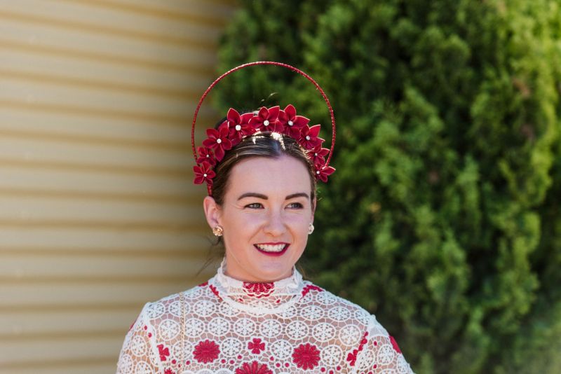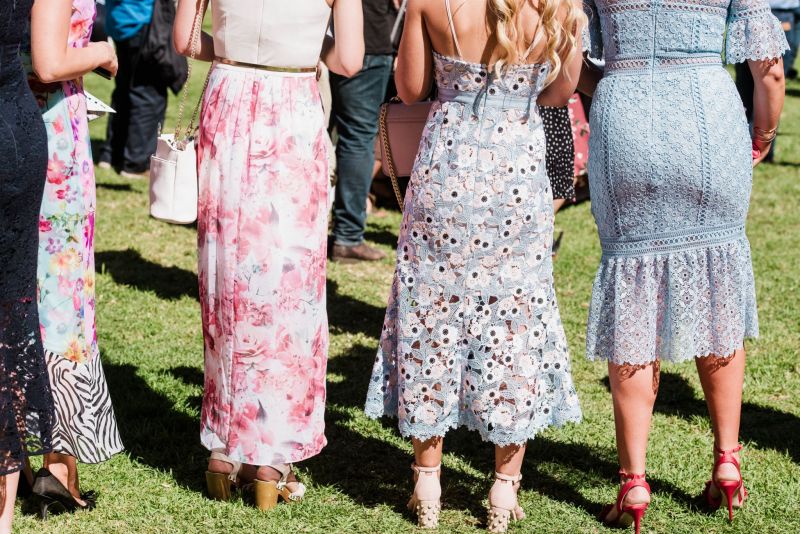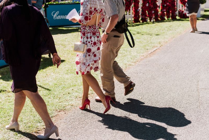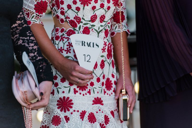 On the headwear scene, the crowd favoured felts and boaters over fascinators, as many donned undone waves and opted out of their crowns. However, one spectacular red floral piece by the talented Shauna Caddy Millinery sat atop the immaculate up-do of Fashion at the Races winner Nicole Hawkins. In a flirty Thurley dress with dainty elbow-length sleeves and delightful botanical details, Nicole’s red Betts pumps made for a magical contrast against the luscious green, with metallic Lovisa accessories making her ensemble even worthier of her win.