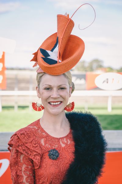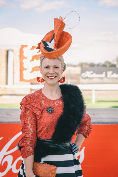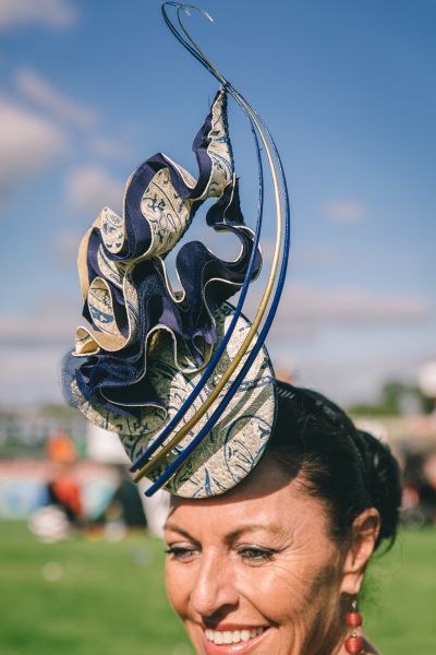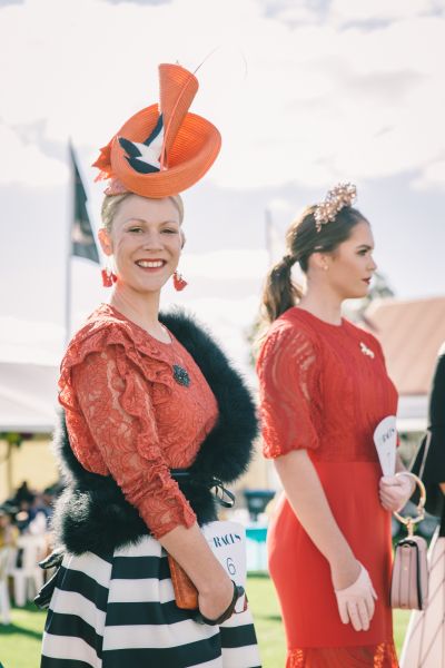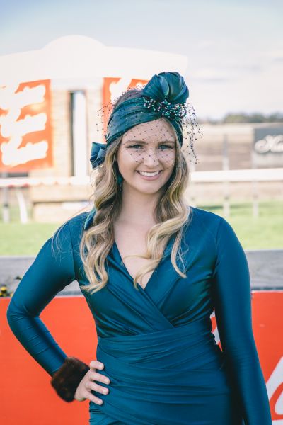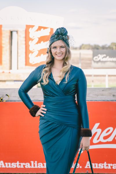 Millinery indeed had its moment, from structured bold headpieces to fascinators and modern metallic bands, but the Fashion at The Races winner took her crown a step further. Kimmi Varcoe earned the Best Dressed Womenswear prize for her emerald silk Sheike dress, a matching modern turban by Helen Mary Millinery and Zizi shoes, finished with vintage fur cuffs.
