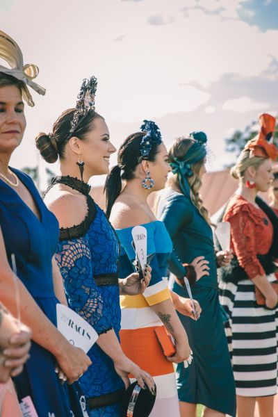 A race queen knows her look is not just about her dress, but in the symphony of fine details and accessories. Fabrics on the field showcased Mediterranean blues, monochrome, burgundy, bursts of burnt orange and nude in textures both lacy and lustrous.