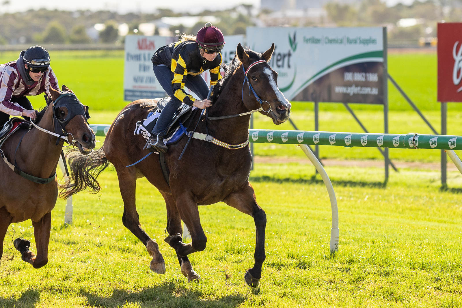 Kayla Crowther didn’t go around a horse on Hidden Legend, but this horse cruised up the straight and his rider never moved a muscle. He wasn’t far away in his first two starts in SA for the Clarken stable and looks in for a good campaign.
