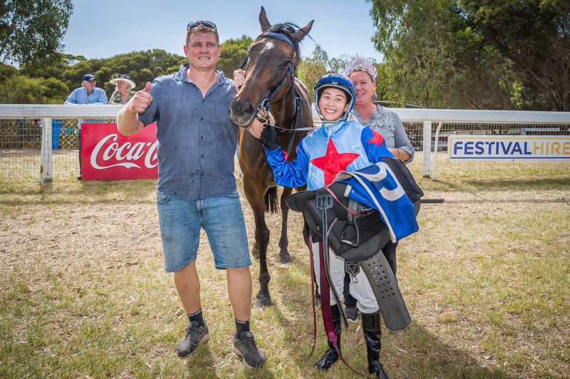 Thursday was Day 1 of the Carnival with a strong turnout for the day’s event. Slightly hotter weather didn’t deter punters who wanted to get a first look at the horses that would be taking part in the races across the two days, with a seven-race card. Day 1 of the Kangaroo Island Racing Carnival offered a slightly more relaxed day of food, wine and racing with several hundred punters coming through the turnstiles. The day was very successful for Stephen Lenehan trained horses, winning Race 1, 2 and 4. I’ll Be Gone ran an incredible race in Race 4. After an abrupt right turn, out of the barriers and following the field by ten lengths, jockey Nichola Yuen produced an incredible ride to win by the tinniest of margins!