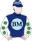 Navy, Sky Blue BM Logo, White Sleeves With Green Maltese Crosses, Navy And Sky Blue Hooped Cap